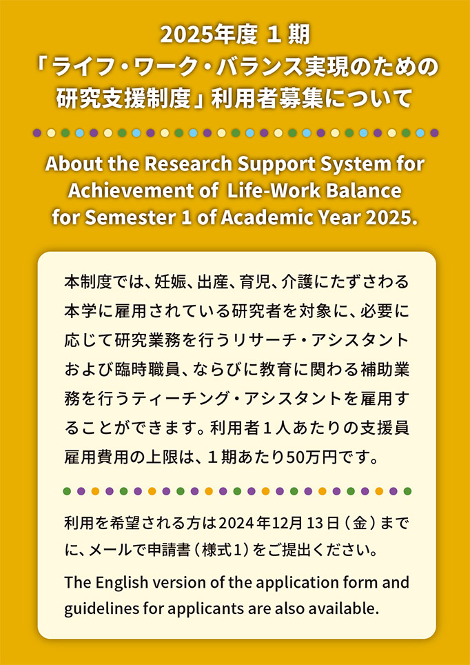 2025年度 1期「ライフ・ワーク・バランス実現のための研究支援制度」