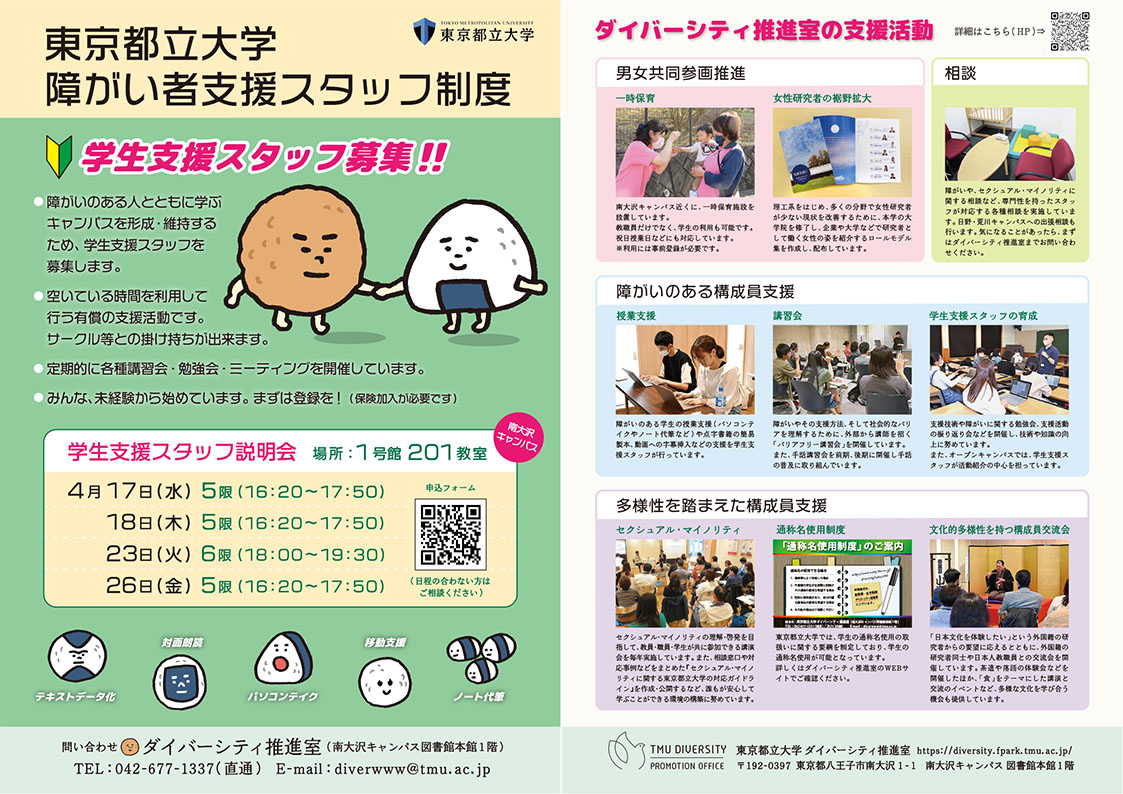 新学期にあたり、学生支援スタッフを募集しています。
