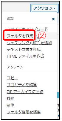 ① フォルダアイコンが表示されている行の「アクション」をクリックします。
