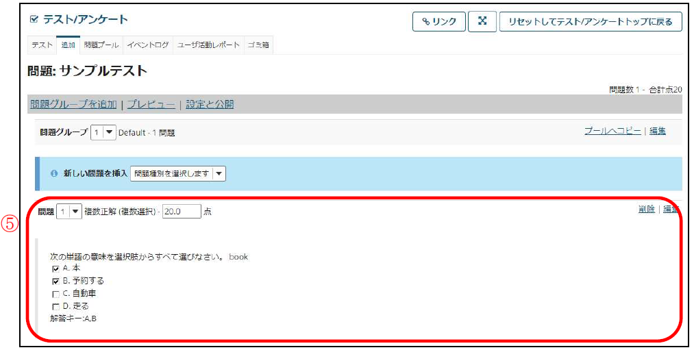 ⑤ 「コピー」ボタンをクリックします。問題が問題プールにコピーされます。