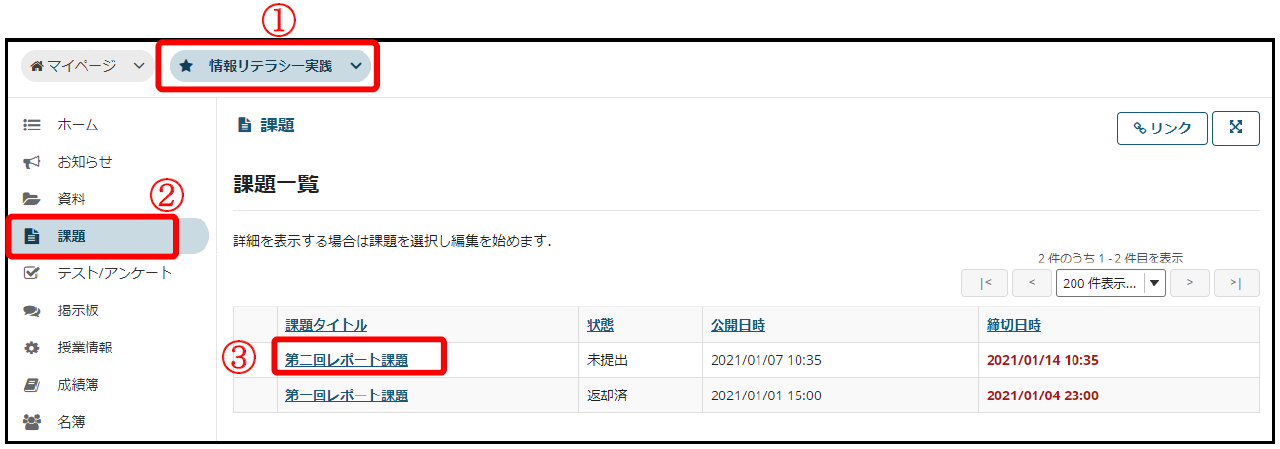 ⑦課題レポートが提出され、提出確認のメールが大学のメールアドレス宛に届きます。
