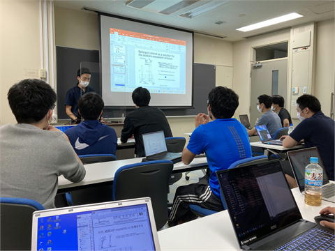 また実験実習では,「運動透過性に関する研究をデザインする」というデザインのもと,どのような運動課題を用いて,どのような条件間の比較をすればよいかについて,院生だけで決定するための議論をする場を提供いただきました。初日は台風の影響で急遽オンラインに変更になるなど,困難な状況でしたが,柔軟に対応してくださいました。こうした振舞いも,将来大学教員になりたい大学院生にとっては,とても参考になると思います。来年以降も,大学院生にとって最高の教育を提供できるよう,優れた先生をお招きしたいと思います。