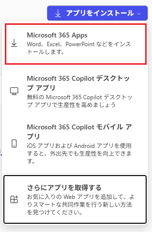 (ii)Microsoft365ログイン後「アプリをインストール」ボタンからインストーラーがダウンロードできる場合
