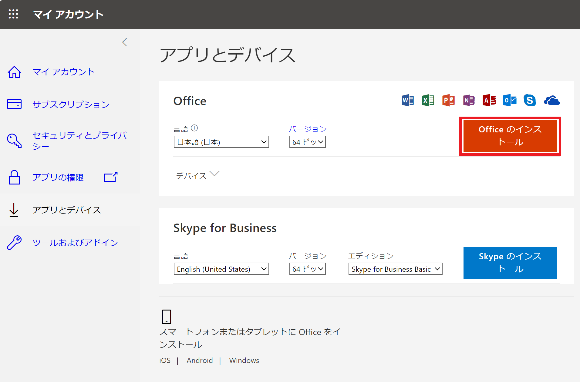 ・利用できるのは最新のOfficeアプリとなります。過去のバージョンを指定してご利用いただくことはできません。