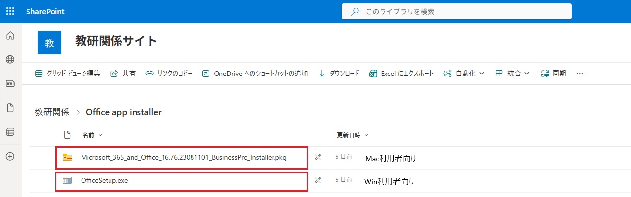なお、Microsoft365 Appsのインストーラーがダウンロードできない場合がありますので(i)、(ii)のいずれかでご対応ください。