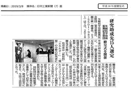 日刊工業新聞 矢崎科学技術振興記念財団贈呈式